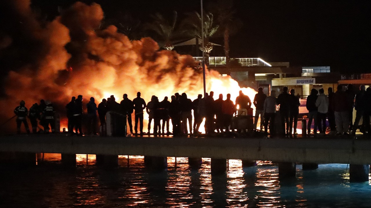 Bodrum'da marinada demirli 5 motoryatı alevler sardı (Video)